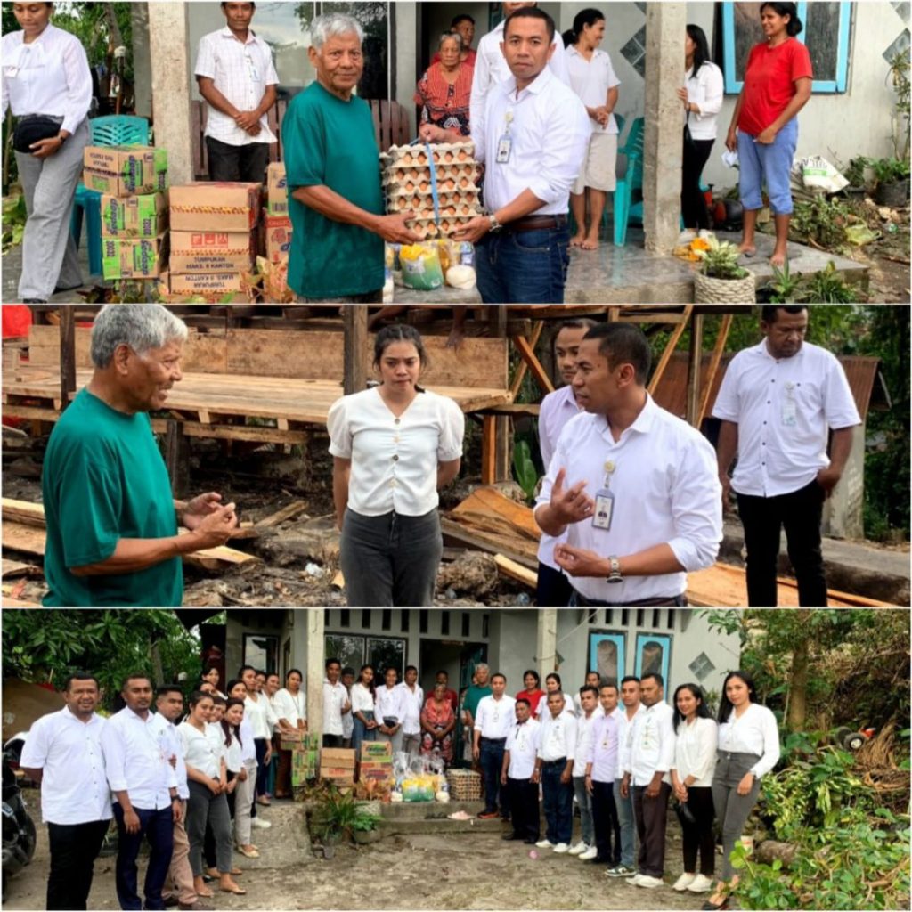 Sebagai bentuk peduli, Pimpinan Bank NTT Cabang Waikabubak, Marthin Sooai, bersama para karyawan bank turut menyerahkan bantuan sembako untuk warga terdampak, Selasa 27 Februari 2024.