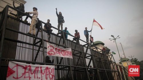 Sorenya, massa berhasil menjebol pagar gedung DPR. Kondisi makin tak bisa dikendalikan hingga menjelang malam.