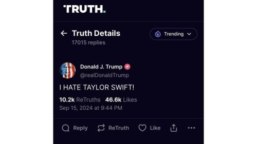 “Saya Membenci Taylor Swift!” demikian tulis Trump.