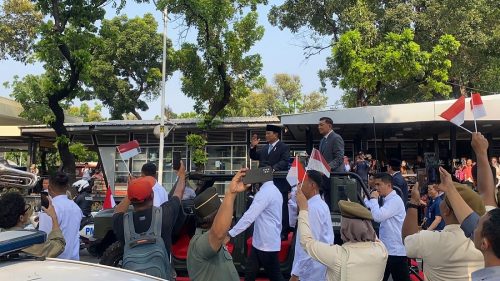 Suara Kupang– Presiden Prabowo Subianto menyempatkan diri untuk menyapa warga di sekitaran Jalan Merdeka Barat, tepatnya dari Kantor Kementerian Pertahanan (Kemhan) menuju ke Istana Negara.