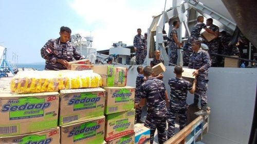 Tiba di Larantuka, TNI AL Distribusikan Bantuan Bagi Korban Erupsi Gunung Lewotobi Laki-laki
