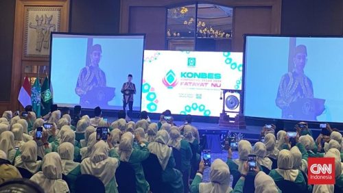 “Terima kasih kepada seluruh Fatayat NU, selamat melaksanakan konferensi besar semoga bisa melahirkan gagasan dan inovasi yang strategis,” kata Gibran sebelum membuka Konbes secara simbolis dengan memukul gong.